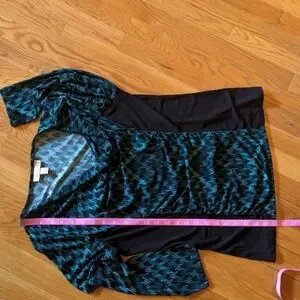 Dana Buchman Medium Green & Black Long Sleeve Shirt w/ Ruching