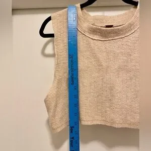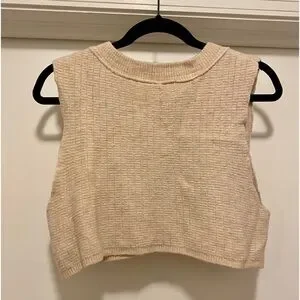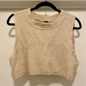Free People Wool Blend Crew Neck Cropped Sweater Vest Tan Cream Oatmeal Large