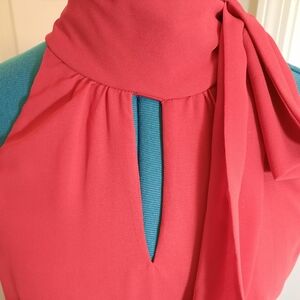 Great condition, only worn once, no rips/tears/stains. Asymmetrical hemline, bow at neckline. Some of the pics aren't the best representation of color. It's not orangey red, it's red red. Back zipper.