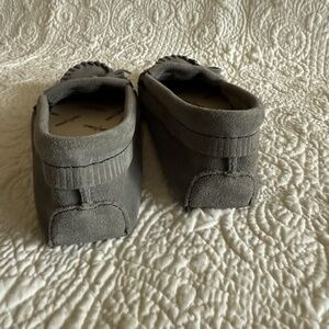 Minnetonka Moccasins, Gray Suede, Size 8