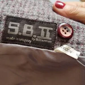 Made in Uruguay. 100% wool, double vent in back and dark red trim on buttons. Fitted, not boxy. Fits like a 6 or 8. message me if you have questions. it's a good vintage piece. comes with xtr button. possibly from the 50's or 60's.