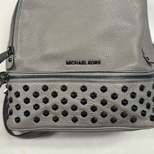 Michael Kors Rhea, elephant gray backpack bag with gunmetal zippers