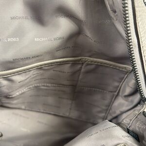 Great condition, however there is a small tear on the hanger as shown in the picture. Michael Kors leather backpack purse