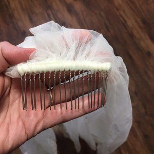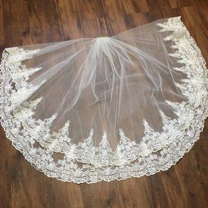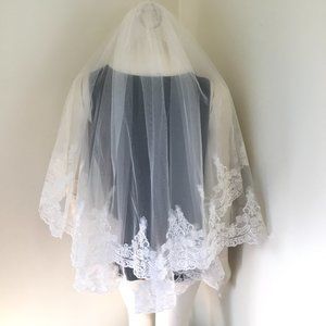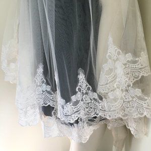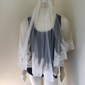 VTG Tulle with Applique Floral Lace 2-tier Wedding Veil White