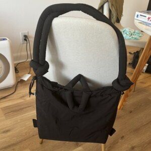 Soft/versatile bag w/ padded water-resistant fabric - and fits laptops up to 17".  Other features: has adjustable straps and can be worn as a handbag, shoulder bag, or backpack; inner pocket; exterior zippered pocket.