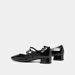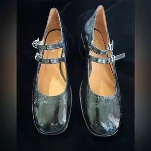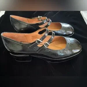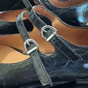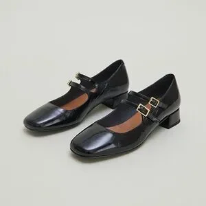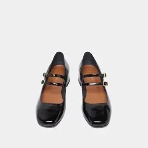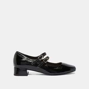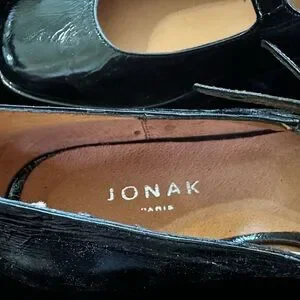 Jonak Paris MARY JANE WITH DOUBLE STRAPS in Black Pleated Patent Leather Size 40