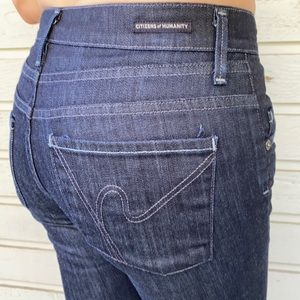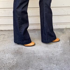 These dark wash denim pants are what you need for the season! Perfect with boots or heels! Comfortable waist band and just the right amount of width at hem. EXCELLENT CONDITION