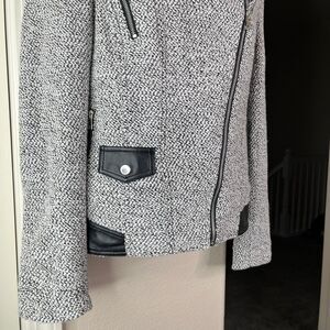 NWT Blanc Noir Women’s Long Sleeve Knitted Leather Jacket Size Small #650
