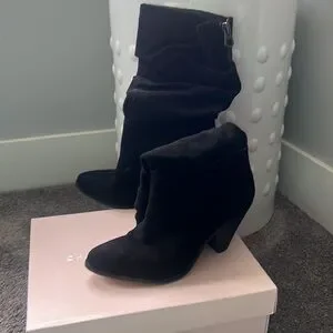 Worn couple of times. Black suede Chinese laundry boots size 7.5 still in box excellent condition. Comfy