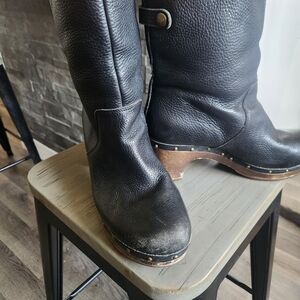 these boots are amazing..wear them up or folded over!! the fur inside the boots is so soft!! they are previously owned and have a small amount of wear on the heels...but don't affect the look of these boots!! ..when u fold them over they are even more gorgeous!!