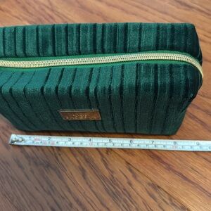 Brand new Mario badescu makeup bag in dark green velvet with gold hardware. Appx 8 x 4.5 x 3 when properly filled.