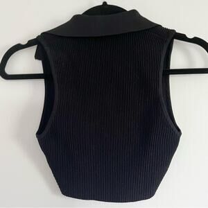 Aritzia Brand. This is a fully fashioned cropped polo tank with an open neckline. It’s made with Sculpt Knit — Babaton’s signature figure-smoothing yarn. The perfect amount of stretch hugs in the right places to shape and sculpt your form. It’s constructed using an Ottoman stitch with close distinct ribs for a structured and textural feel.