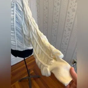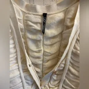 White chunky knit cardigan with buttons. Large flowy sleeves