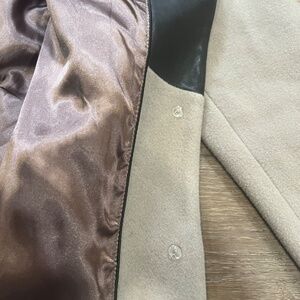 Badgley Mischa Wool Dress Coat Mixed Media Lace Leather Accents Sz S Taupe/Black