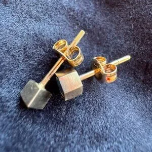 9ct yellow gold and Australian Lightning Ridge doublet opals. Approximately 4mm x 4mm