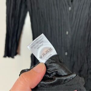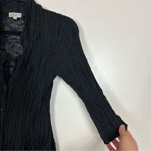 Alquema Crinkle Dress Size 1 (6 8 10) Midi 3/4 Sleeve Button Black