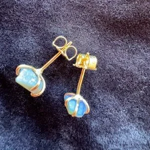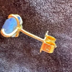 AUSTRALIAN OPAL STONE STUDS. 14k gold claw setting. Handmade by Variance Objects. Size small