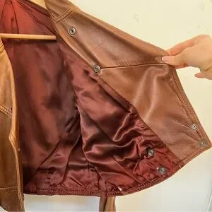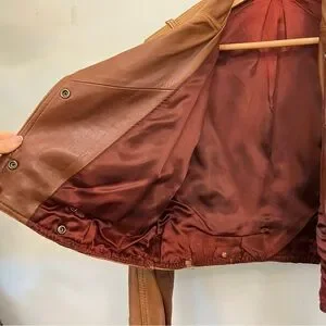 Buttery, soft, brown leather motorcycle jacket with a burgundy silk lining. size women’s small