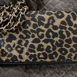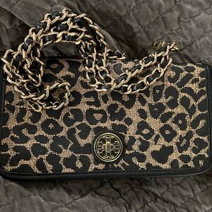 Tory Burch Leopard Print Raffia Crossbody Bag