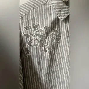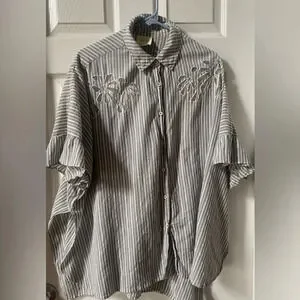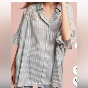 Excellent condition Anthropologie Maeve Oversized Fit button down with Floral detail, Flutter sleeves , side slits size XS-S could also fit medium