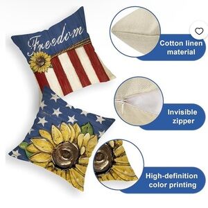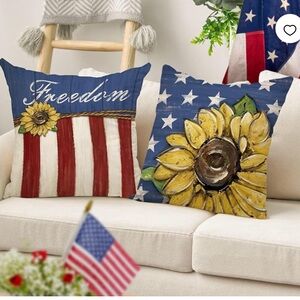 4th Of July Sunflower Patriotic Decorative Throw Pillow Covers 18 X 18 Set Of 4,