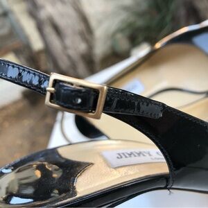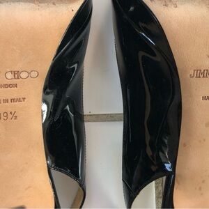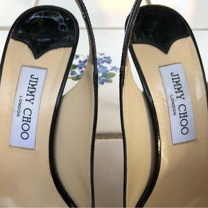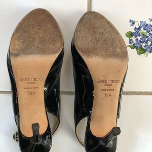 Jimmy Choo Size 39.5 9.5 Black Patent Leather Peep Toe Sling Back Heel Pumps