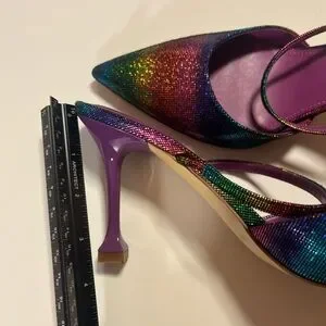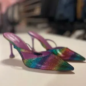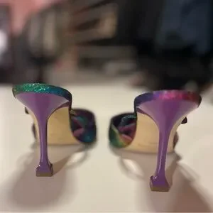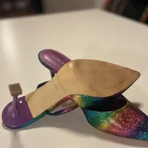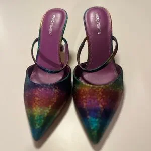 Marc Fisher Heeled Mules Sandals Pointed Toe Metallic Rainbow Colors 9.5M Hadais