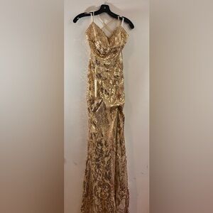 New Sparkly Sequin Mermaid Dress Spaghetti Straps Formal Evening Dress Slit