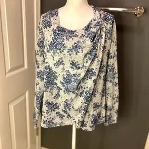 👩🏽🍼BEST NURSING/BREASTFEEDING SWEATER EVER. Size M Jessica Simpson. Multiple ways to wear. Open or shut or partially shut. Soft blanket line fabric. Heathered grey with blue flowers. AND there’s a light stretch to it (5% spandex). The BEST.