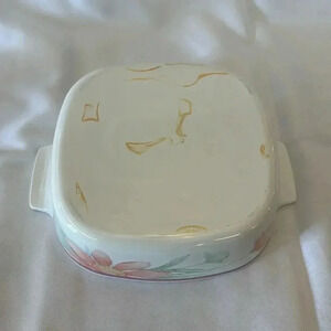Vintage CorningWare "Peony Floral" A-1-B 2 Liter Casserole Dish w/ Pyrex Lid A9C