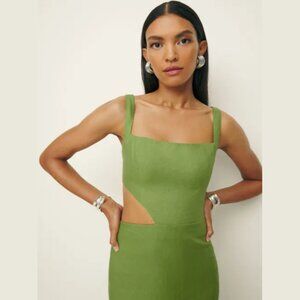 NWOT Reformation Satori Linen Dress in Avocado Green Sleeveless Maxi Size 8