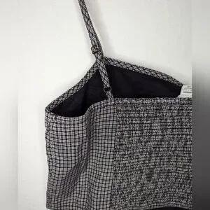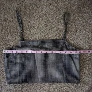 AE Outfitters small black plaid crop top with stretch and adjustable tank straps, size medium