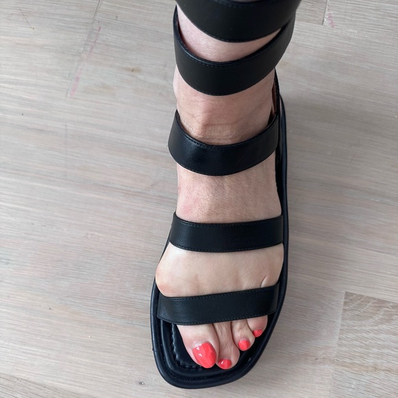 Pictures on the light hardwood are the actual sandal. Other pics are from the website.