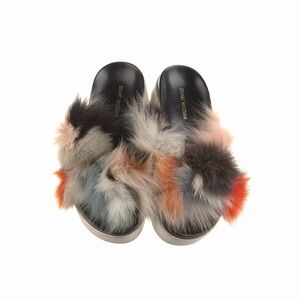 Stuart Weitzman Rabbit Fur Platform Slides Sandals Size: 6