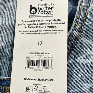 No Boundaries Butterflies Print Juniors Five Pocket Flare Jeans Size 17 NEW