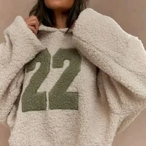 Fall/Winter Warm Color Block "22" Number Fleece Oversized Hoodie For