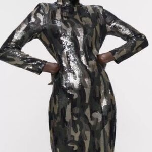 ZARA Camo Sequin Dress