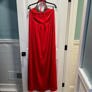 Vince Camuto Vibrant Red Open Back Beaded Neckline Maxi Dress. Size 14.