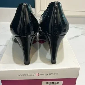 Naturalizer black shiny pumps. The Penny pump is a classic style that can go from fancy to skinny jeans! Worn one time inside, no signs of wear, ladies size 10!