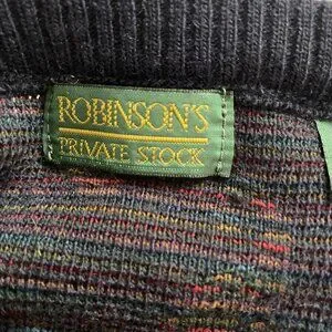 Vintage 80s Robinsons Private Stock sweater, Italy made, features a paisley print in navy, red, and yellow. Made from acrylic and wool, this men's size L pullover is a classic crewneck with cable knit details.