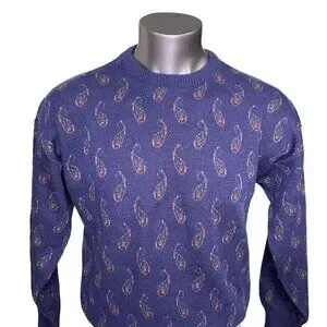 Vintage 80s Italy Made Sweater Paisley Print Acrylic Wool Mens Size L u
