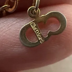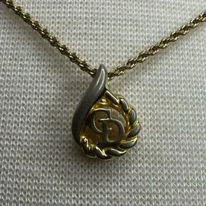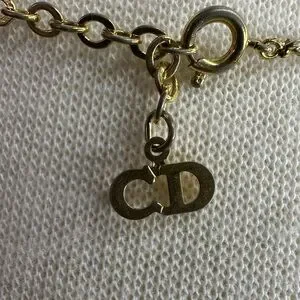 Christian Dior CD-Logo Design Pendant Necklace Golden. This necklace is used and does show normal signs of wear. There is discoloration and could use a gold plating.