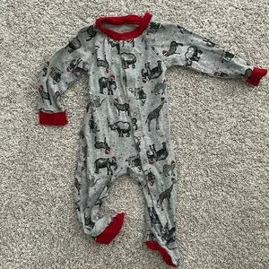Matching women’s and baby Christmas/holiday pajamas with animals in Santa hats print