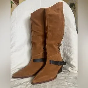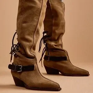 Free People Back-lace Sway Low Slouchy Boots. Western inspired suede pull-on boot with lace-up detailing and spur strap accent. Pointed toe with 2 inch block heel. Artisan crafted from fine leathers and premium materials, this slouchy style pairs perfectly with anything from jeans to dresses. Military taupe suede. New with tags.