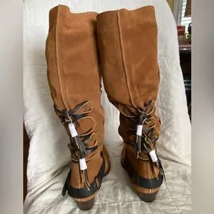 Free People Back-lace Sway Low Slouchy Boots. Western inspired suede pull-on.