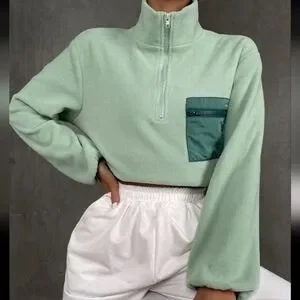 Color Block Quarter Zip Lantern Sleeve Pullover