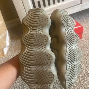 6 half Yeezy sneakers. Desert color i believe. Top of left shoe does have a spot, but I’m sure it can be washed off. Worn to run errands and work out.
