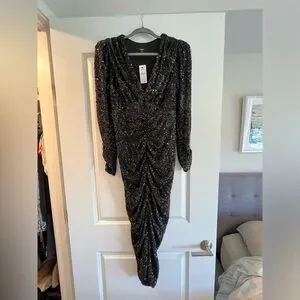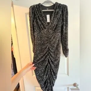 Super sexy sequin dress with high low ruching and 3/4 sleeves. Brand new new with tags! Perfect for the holiday season!