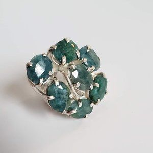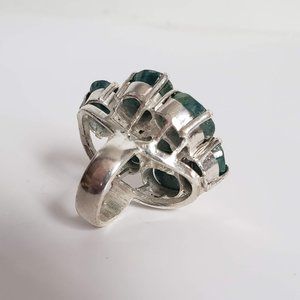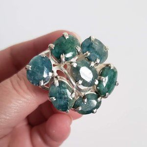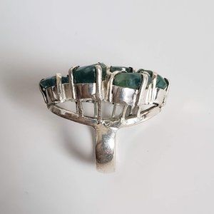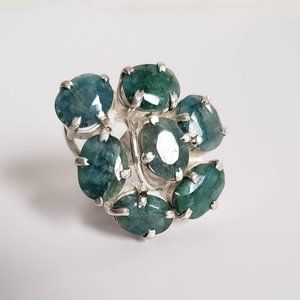 HUGE 925 Natural EMERALD Ring Corundum Native Artist 12mm stones Sterling Silver