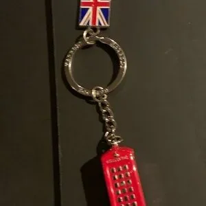 Brilliant red, white, and blue colors over basic silver tone metal. British flag, key ring and telephone booth